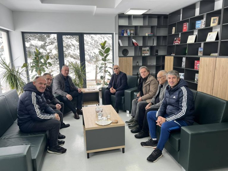 Presidenti i Federatës së Futbollit të Kosovës, Agim Ademi së bashku me nënkryetarin Bakir Burri dhe anëtarin e Komitetit Ekzekutiv,...