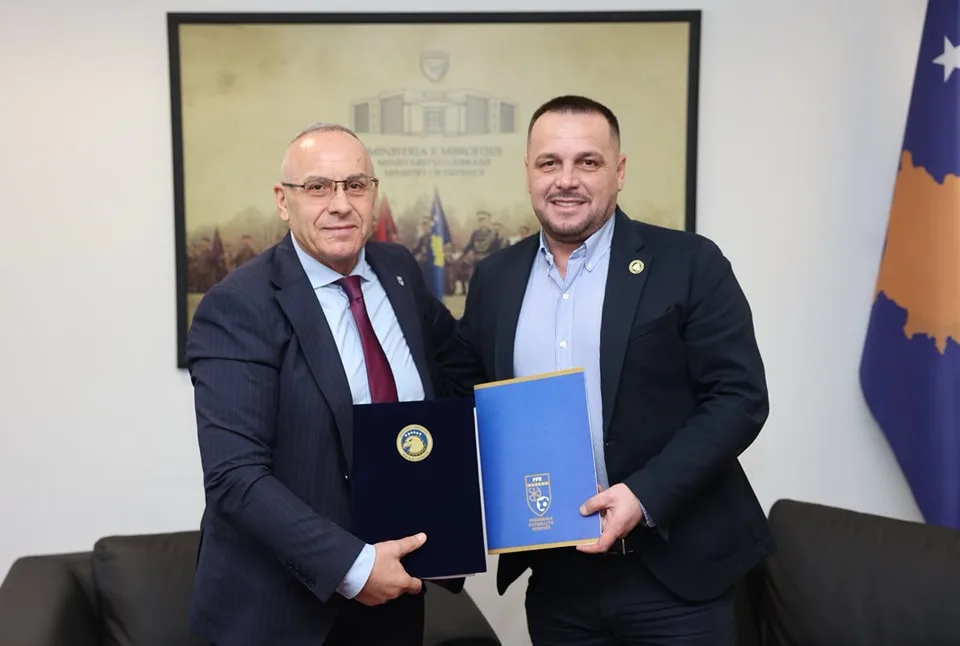 Presidenti i Federatës së Futbollit të Kosovës, Agim Ademi është takuar sot me Ministrin e Mbrojtjes së Kosovës, Ejup Maqedoncin me të cilin kanë nënshkruar një marrëveshje bashkëpunimi në përputhje me mundësitë dhe nevojat e të dy palëve.