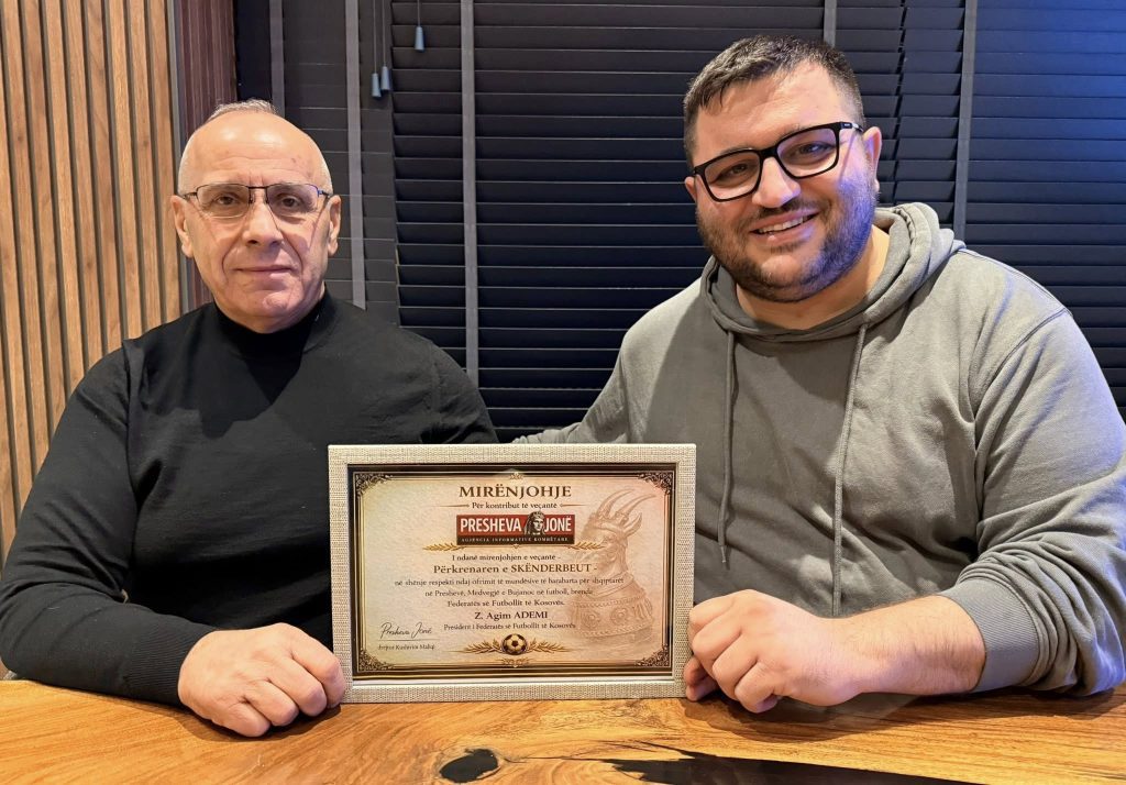 Presidenti i Federatës së Futbollit të Kosovës, Agim Ademi, ka marrë nderimin e veçantë me “Përkrenaren e Skënderbeut” nga “Presheva Jonë”.