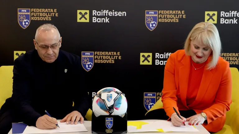 Sot, në një ceremoni të mbajtur në objektin e Bankës Raiffeisen, Federata e Futbollit e Kosovës dhe Banka Raiffeisen në...