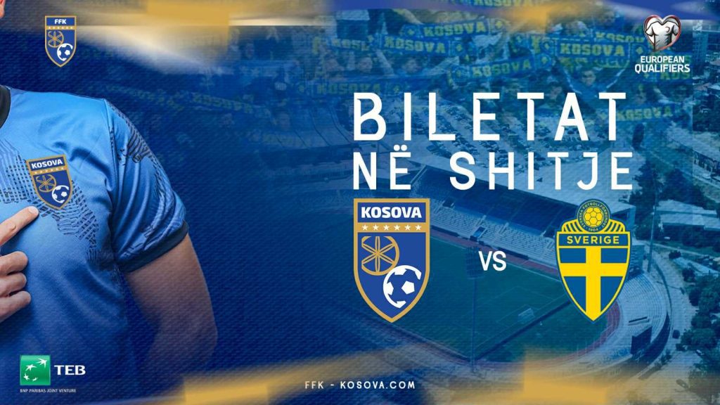 Federata e Futbollit e Kosovës ka njoftuar opinionin se biletat për ndeshjen Kosovë –Suedi, në kuadër të kualifikimeve për Kupën e Botës 2026, e cila zhvillohet më datë 8 shtator 2025, në stadiumin “Fadil Vokrri”, sapo kanë dalë në shitje. Ato mund t’i blini përmes platformës online në linkun e mëposhtëm: