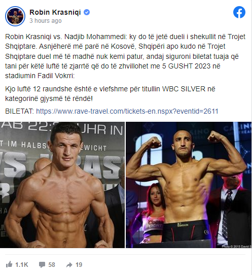 Boksieri i suksesshëm kosovar thotë se ku do të jetë dueli më i madh ndonjëherë i boksit që do të mbahet në Prishtinë, por edhe në trojet shqiptare në përgjithësi.